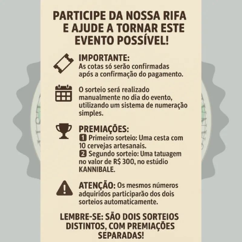 Participe da nossa rifa e ajude a tornar este evento possível!