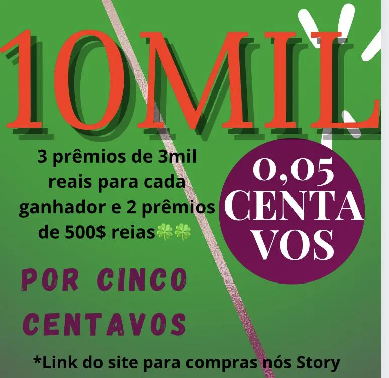 Totalizando 10 mil reais em prêmios e terá 5 ganhadores, você pode ser um deles🍀 Apenas 0,05 centavos.