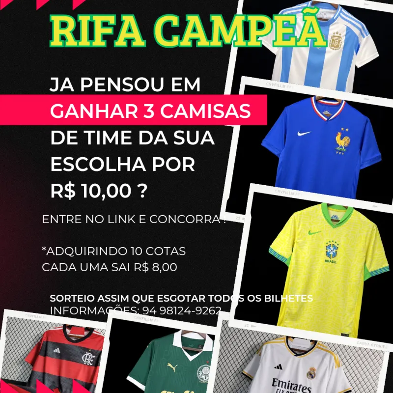 📍O Ganhador levará para casa 3 camisas de time importadas Tailandesa linha 1.0 modelo Torcedor.