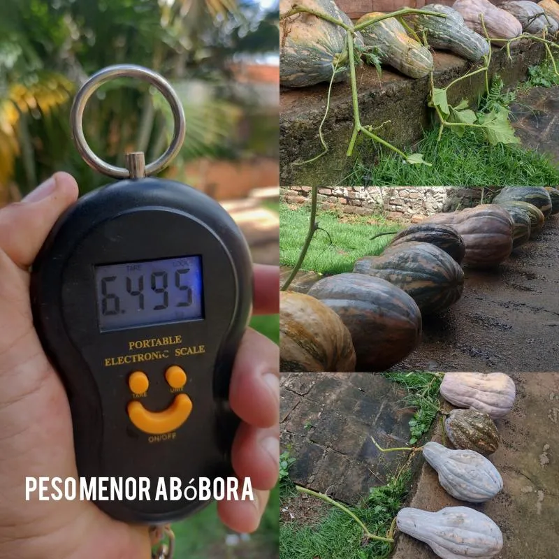 A menor abóbora peso 6,5kg totalizando aproximadamente 30 kg de abóbora.