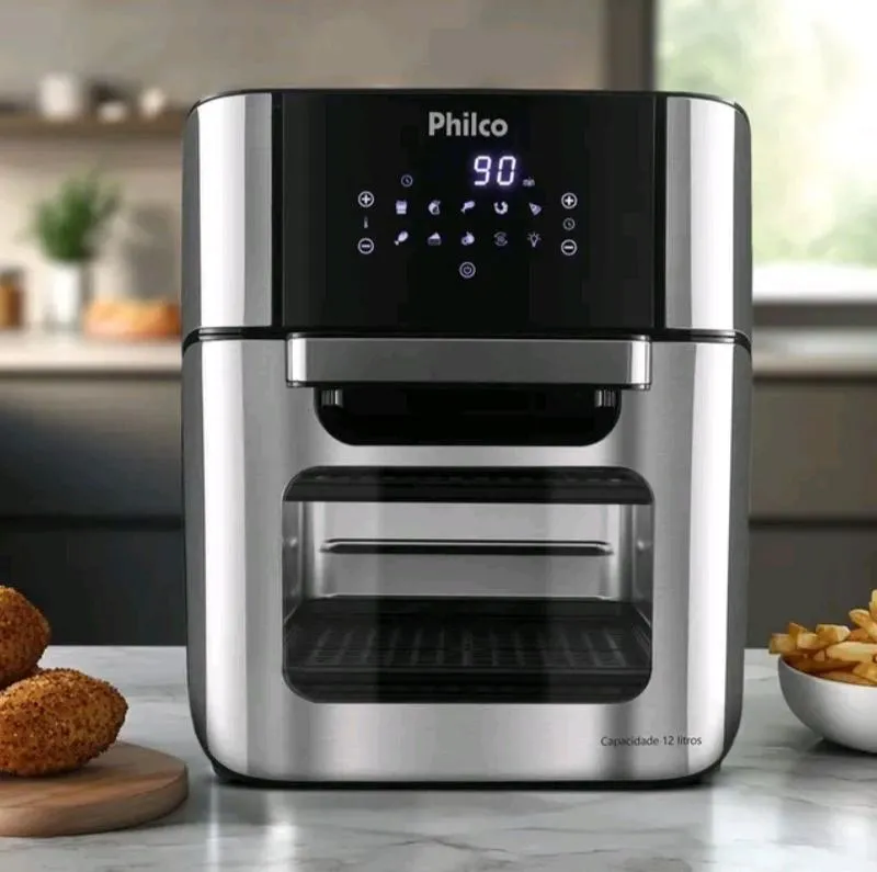 SERÁ O PRESENTE AO VENCEDOR UMA AIR FRY TOP LUXO MODELO PHILCO 12 LITROS DIGITAL OVEN 220V. AIR FRY QUE NÃO FAZ FEIO EM SUA CASA! E INOX.