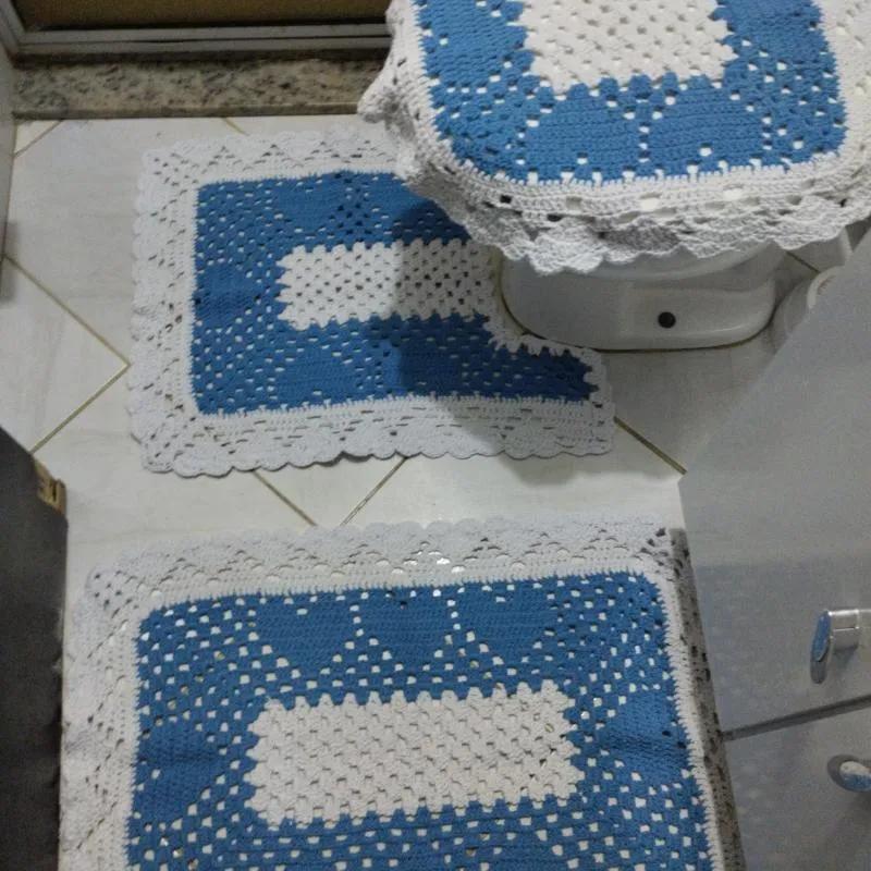 Um jogo de tapete pra banheiro de crochê,que será sorteado no dia 16/03/2024 o pagamento pode ser no Pix