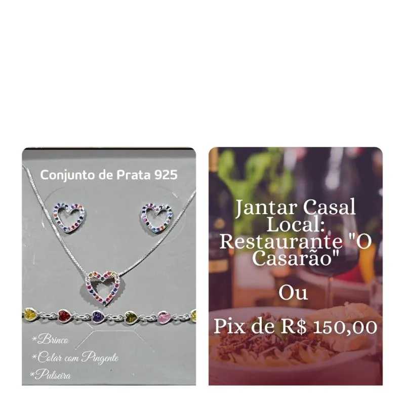 1º lugar - Conjunto de Prata 925 (Brinco, Colar com Pingente e Pulseira)