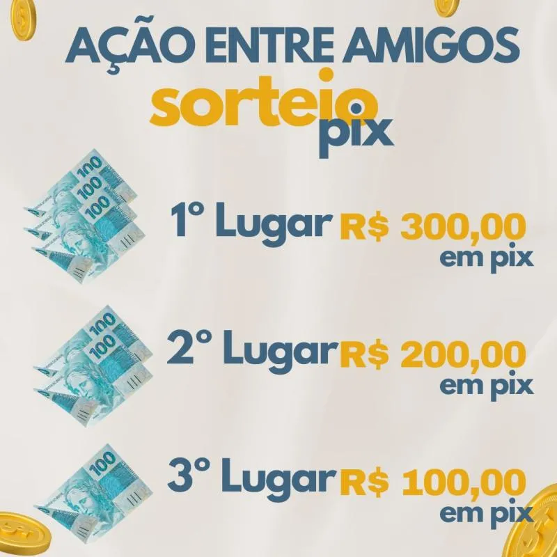 O sorteio acontecerá dia 31/03/2024. Os devidos ganhadores receberão seus prêmios via pix no ato do sorteio que será online