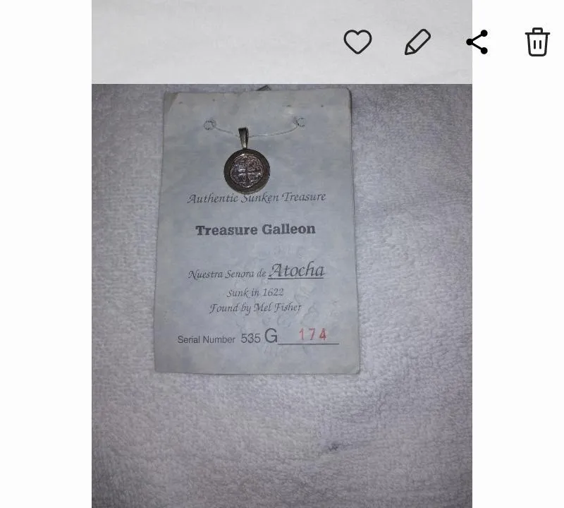 Pingente confeccionado em ouro e prata do naufrágio do Nuestra Senora de Atocha. Peça histórica, possui certificado de autenticidade