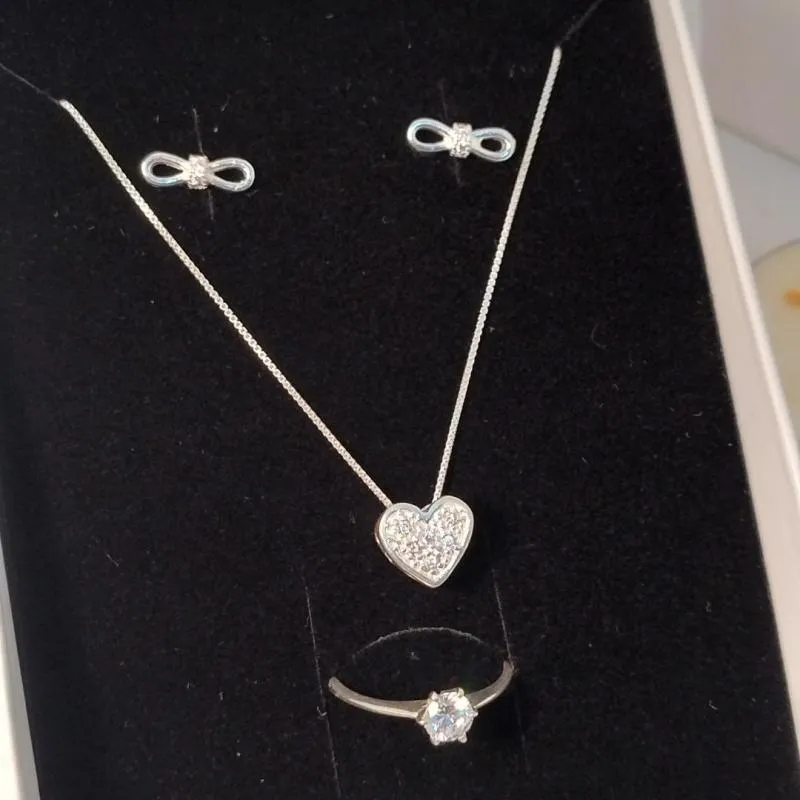 - Prêmio: colar com pingente,par de brincos e anel em prata com Zirconeas, certificado de garantia e embalagem para presente.