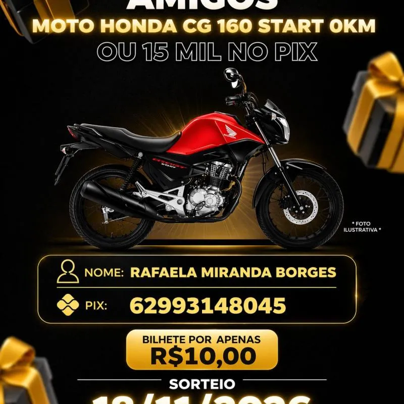 Minha formatura será este ano, e a empresa organizadora nos presenteou com uma rifa valendo uma moto ou 15 mil reais no valor de R$10,00 cada número. 🏍️✨