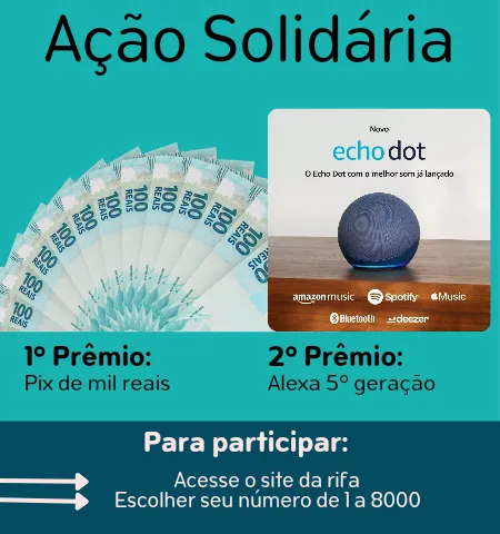 2. O primeiro prêmio da Rifa será R$1000,00 no PIX e no segundo prêmio será uma Alexa 5ª Geração.