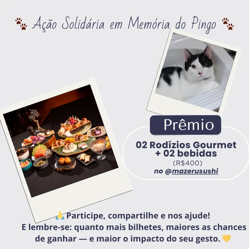 🎁 O prêmio? Um jantar completo para casal no Mazeru Sushi, um dos melhores restaurantes de Balneário Camboriú! Uma experiência incrível que pode ser sua — e ainda ajuda a transformar essa despedida em um gesto de amor.