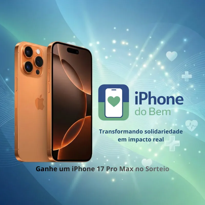 Ao adquirir um bilhete da Ação Solidária iPhone 17 Pro Max, você contribui diretamente para a redução das despesas médicas acumuladas, apoia uma família real em processo de reconstrução financeira, e concorre ao iPhone 17 Pro Max, um dos smartphones mais desejados do mercado.