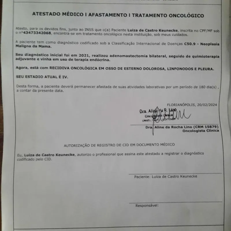 Ajude a Luiza a iniciar o tratamento de metástase