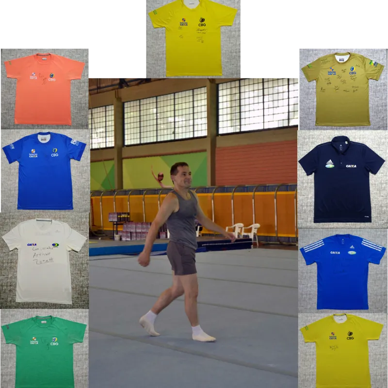 Estamos realizando uma rifa especial com 9 camisetas autografadas por grandes ídolos da Ginástica Brasileira! Esta é a sua chance de ganhar itens exclusivos assinados por renomados atletas e, ao mesmo tempo, ajudar um grande atleta master em um momento difícil. Sergio e sua família tiveram seu negócio severamente afetado pelas fortes chuvas no sul do Brasil. Sergio é um exemplo de perseverança e dedicação na ginástica artística master e agora precisa de nosso apoio para reconstruir sua fonte de sustento. Vamos nos unir e mostrar a força da nossa comunidade!