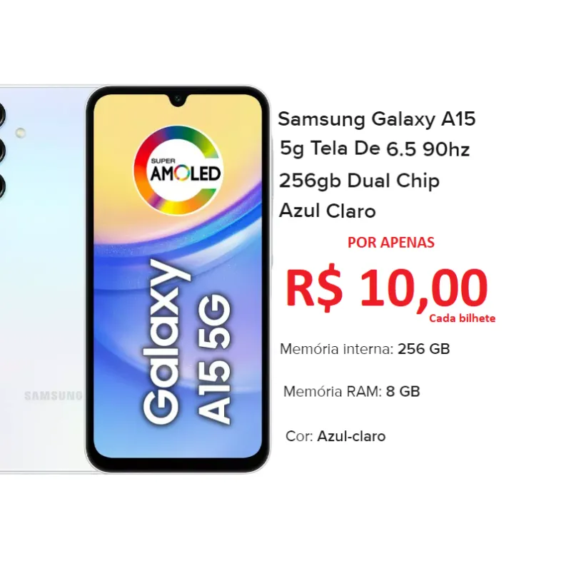 Cada Bilhete adquirido estará concorrendo pela Loteria Federal um SAMSUNG GALAXY A15