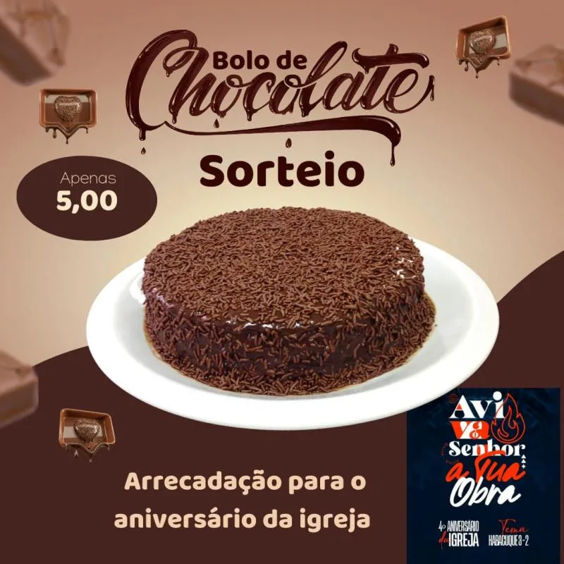 Por apenas 5 reais compra e concorra a um bolo delicioso