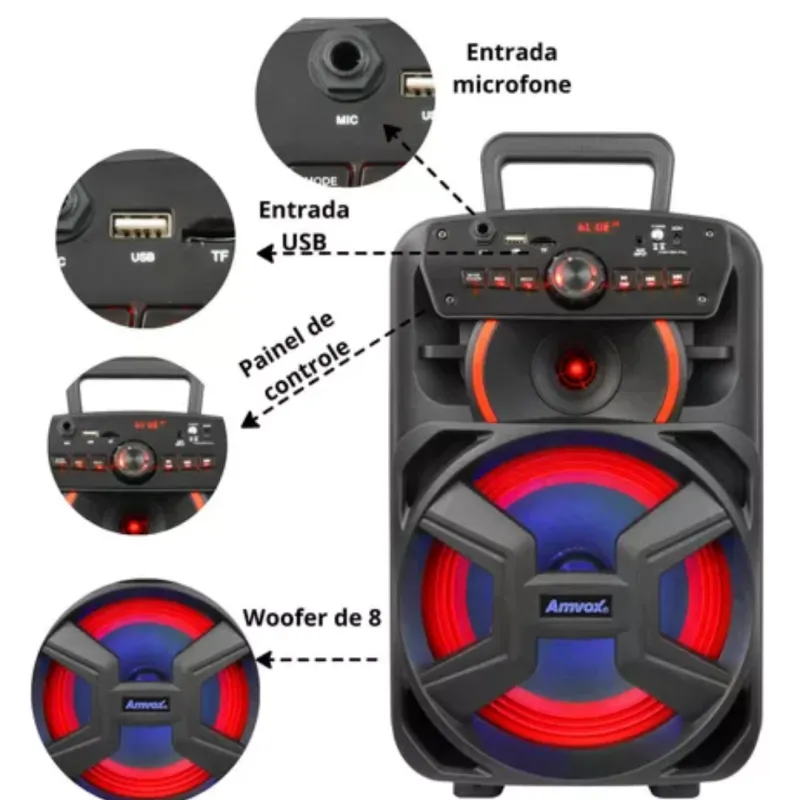 Caixa Amplificada Amvox Aca 221 Portátil C Bluetooth Bivolt Cor Preto 110V/220V