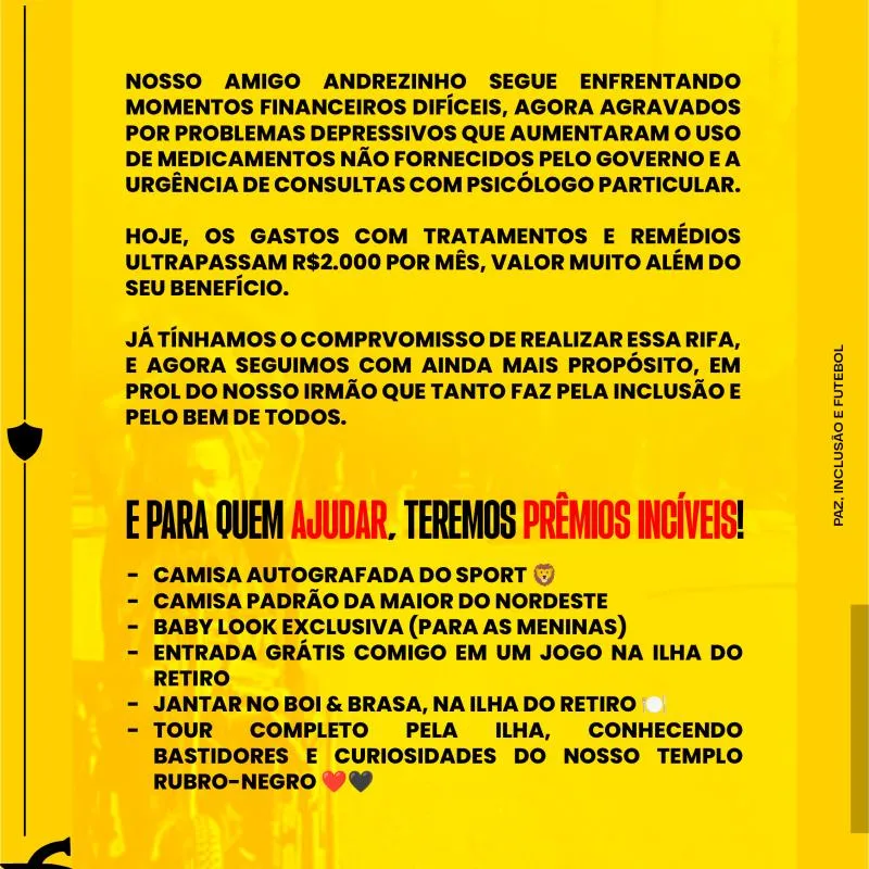 Já tínhamos o compromisso de realizar essa rifa, e agora seguimos com ainda mais propósito, em prol do nosso irmão que tanto faz pela inclusão e pelo bem de todos.