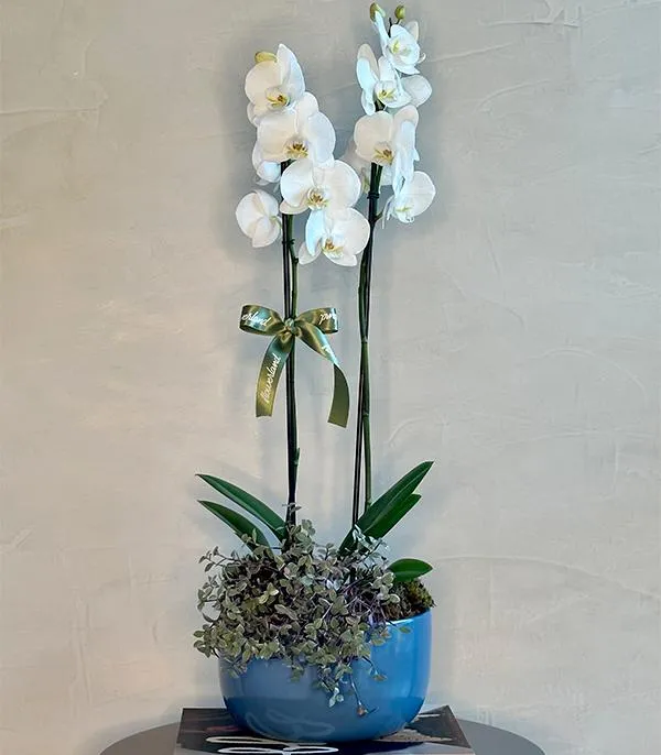 Rifa de uma cesta com orquídea da Floricultura Atelier Flores e Presentes, para ajudar no tratamento da cadelinha Caramela.