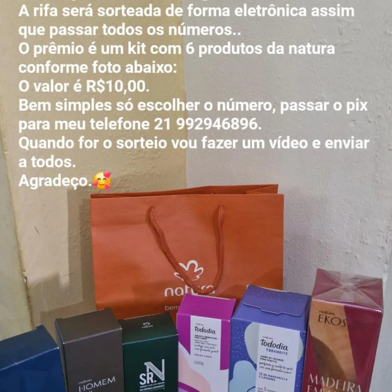 📅 A Data do sorteio será divulgado quando obter 70% das cotas vendidas.