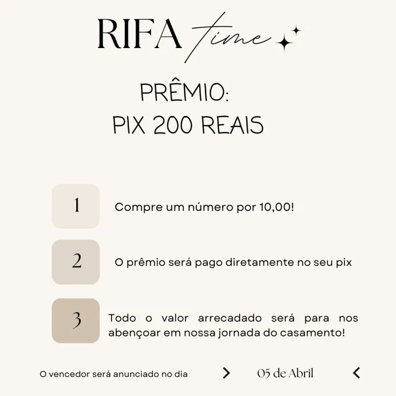 Compre um número por 10 reais e nos ajude a realizar o nosso casamento 💚
