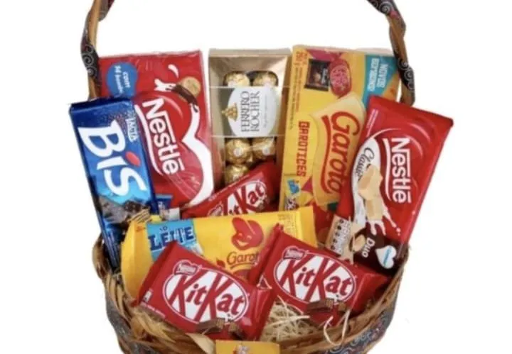 O Item sorteado será uma cesta de chocolate avaliada em 150 reais. A imagem é ilustrativa, mas conterá os mesmos/parecidos itens e mais...