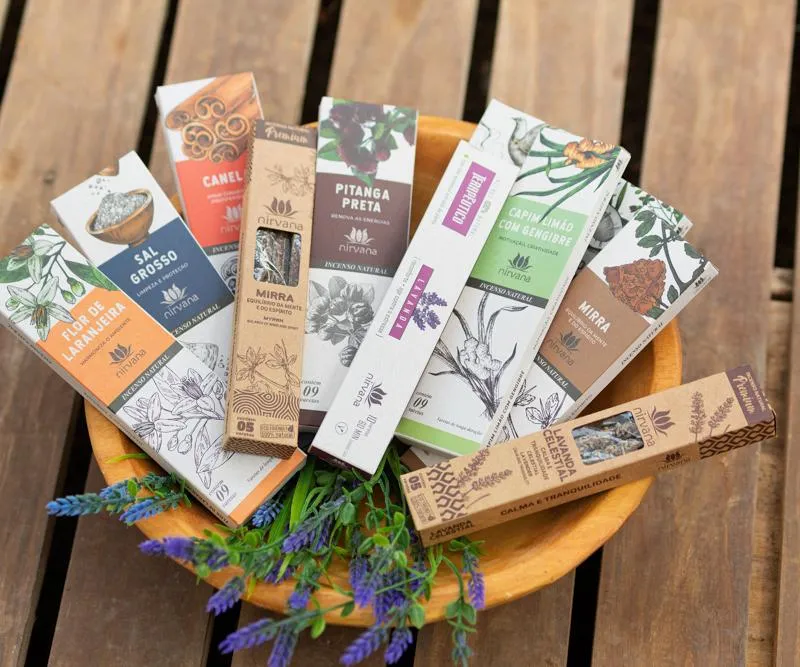 Contém 12 incensos naturais da marca nirvana: (valor aproximado de 280,00 reais)