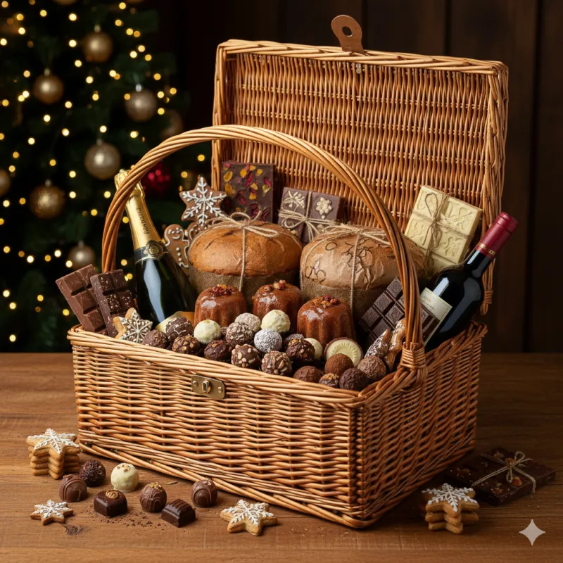 A Cesta será repleta de itens Natalinos Dicacau Chocolates e itens de marcas parceiras.