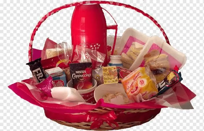 Uma maravilhosa ceste de café da manhã, recheada com muitas guloseimas.