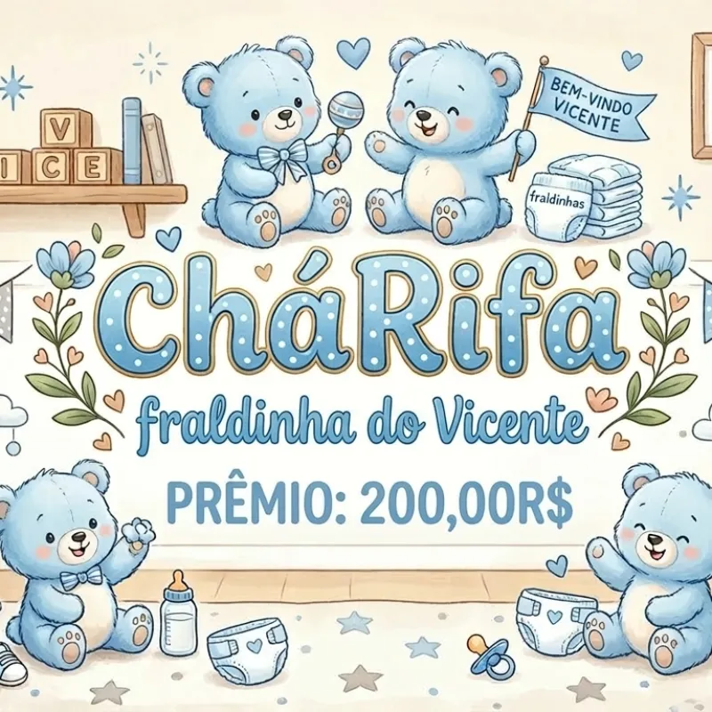 Criamos esse chá rifa para ajudar a montar o enxoval e deixar tudo prontinho para receber nosso pequeno com muito carinho.