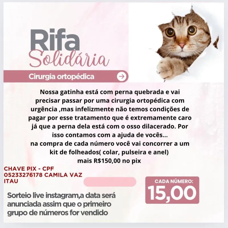 Cirurgia ortopédica de uma gatinha que está com a perna dilacerada
