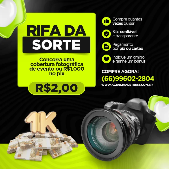📅 A Data do sorteio será divulgado quando obter 70% das cotas vendidas.