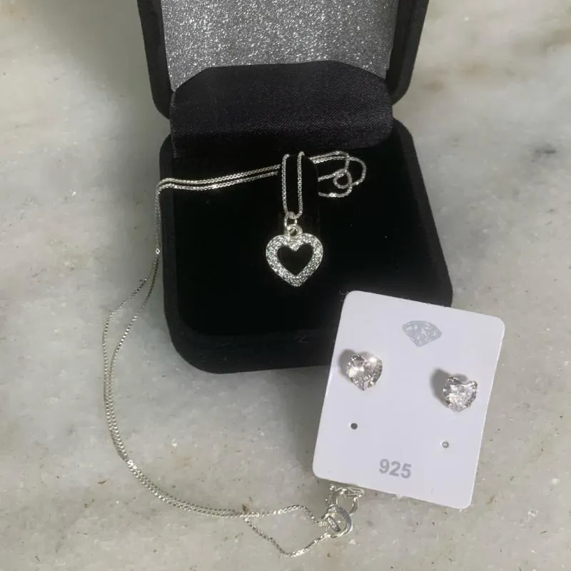 Colar de coração + brinco ( Prata 925)