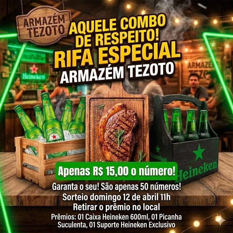 O Armazém Tezoto preparou uma Rifa Especial para você garantir o churrasco de primeira! São apenas 50 números, então as chances de ganhar são gigantes.