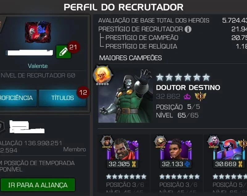 Conta Valente com 4 Campeões 7*R3 (Bispo, Shury, Vox e América).