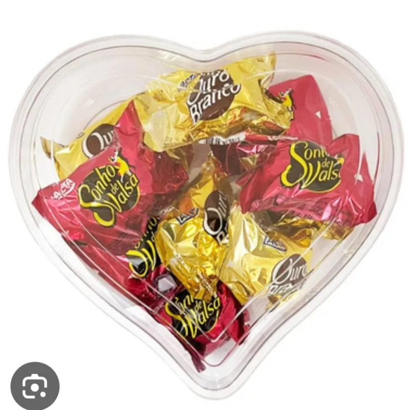 Embalagem formato coração 10 bombons sortidos sonho de valsa e ou ouro branco.Fita decorativa.
