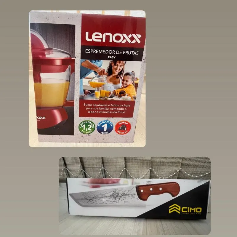 ESPREMEDOR DE FRUTAS E FACA PARA CHURRASCO