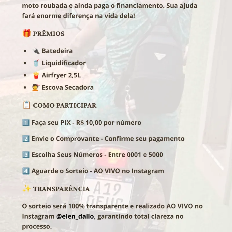 📅 A Data do sorteio será divulgado quando obter 70% das cotas vendidas.