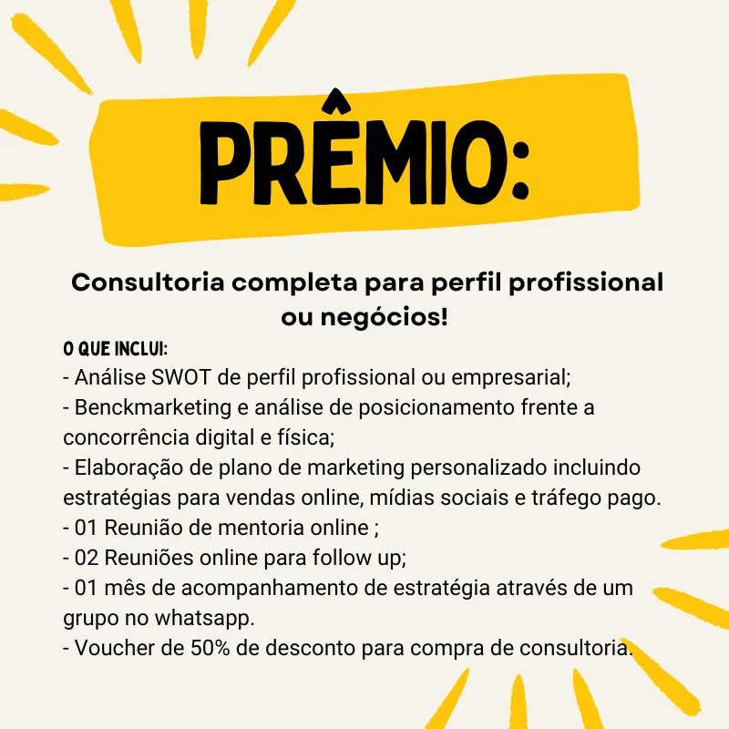 - Voucher de 50% de desconto para compra de consultoria.