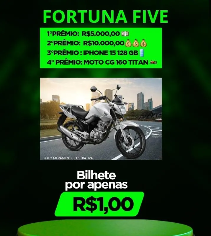 4° Prêmio: Uma moto CG 160 Titan;