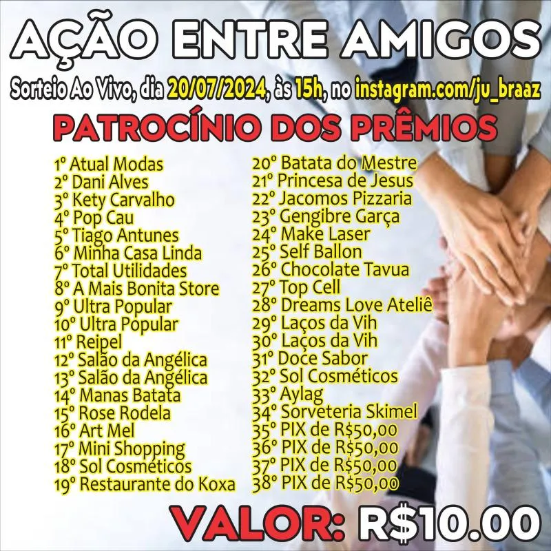 O Sorteio ocorrerá através de uma Live pelo Instagram ju_braaz dia 20/07 às 15:00.
