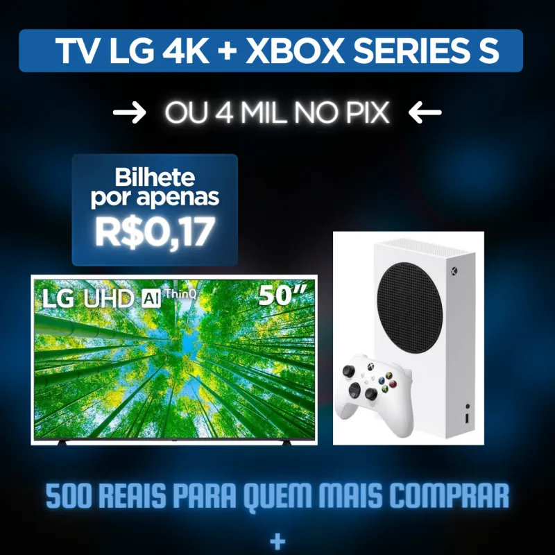 1° PRÊMIO TV LG 50 POLEGADAS 4K + XBOX SERIES S BRANCO OU 4MIL NO PIX