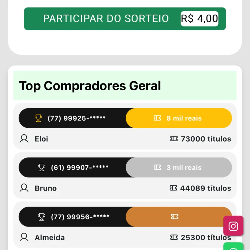 📅 A Data do sorteio será divulgado quando obter 70% das cotas vendidas.