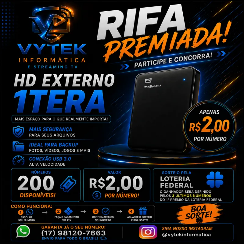 💾 HD EXTERNO 1TB Mais espaço, mais segurança e desempenho pra seus arquivos!nça e desempenho pra seus arquivos!