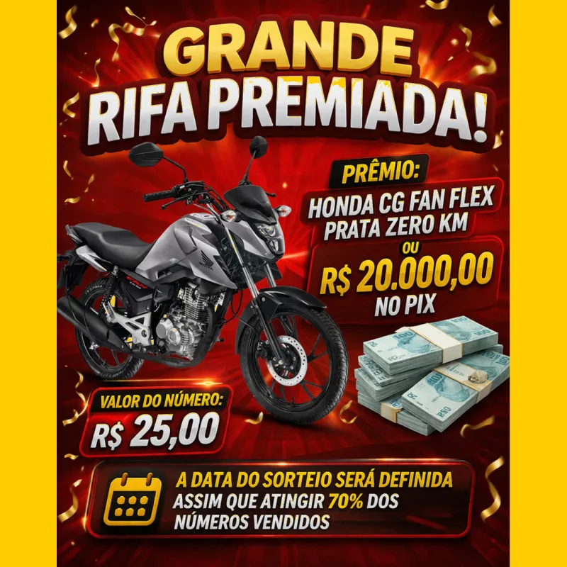 1º lugar - Moto fan flex ou 20.000,00 no pix