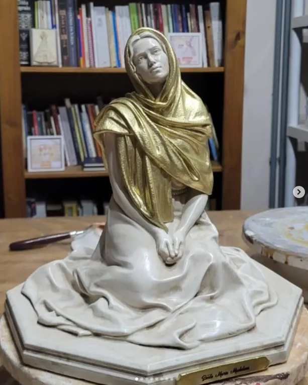 Essa imagem de Santa Maria Madalena possui 25 cm e mais de 4kg. É produzida de maneira exclusiva pela @caritas.artesacra.