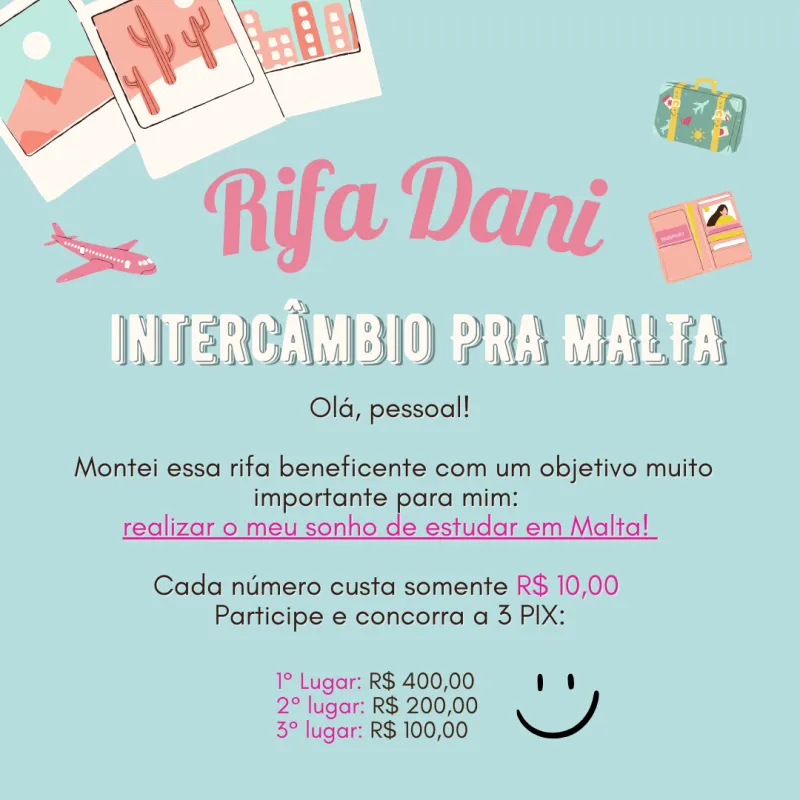 Olá, pessoal! Montei essa rifa beneficente com um objetivo muito importante para mim: