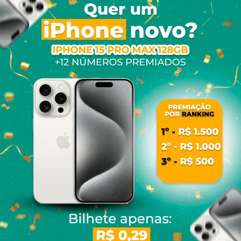 🎉 Ganhe um iPhone 15 Pro Max ou R$ 6.000 no Pix! 🎉