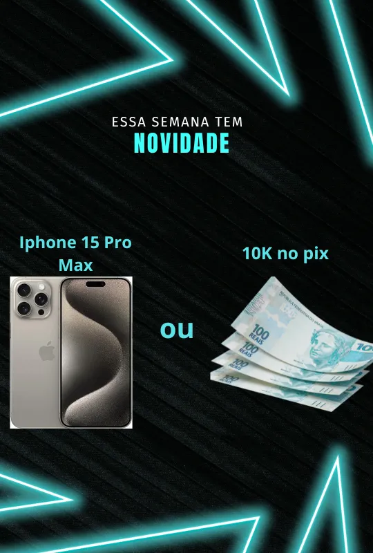 💵O Premio é você decide, um iphone 15 pro max 256gb ou 10k no seu pix