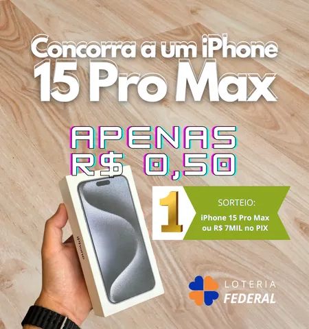 Grande Prêmio: Um magnífico iPhone 15 Pro Max ou uma incrível quantia de R$ 7.000 no PIX para o sortudo vencedor!