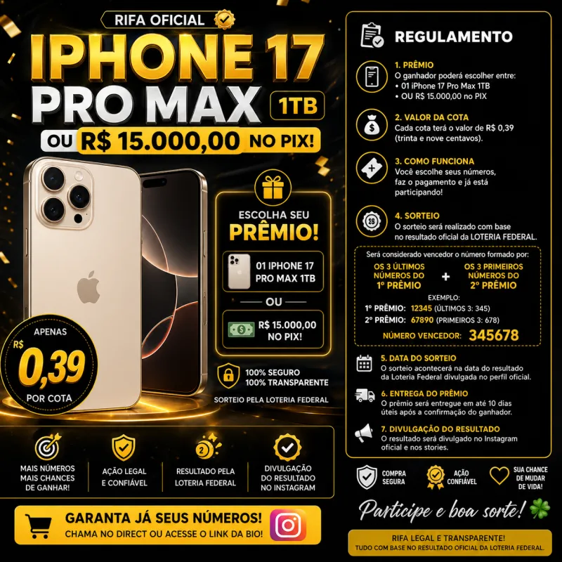 “Campanha Premiada – iPhone 17 Pro Max ou R$ 15.000,00”