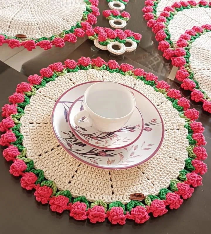 Você quer concorrer a um lindo jogo de Sousplat modelo 'Rosas' igual ao da foto.